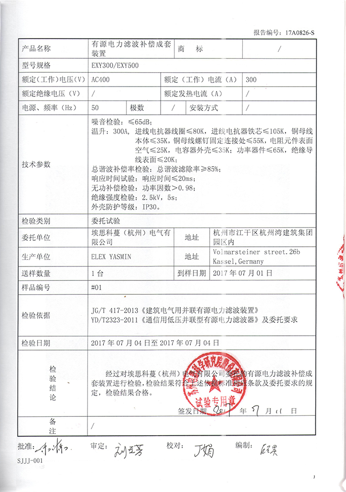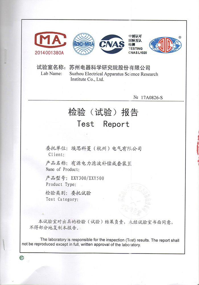 EXY300 500有源電力濾波成套裝置實(shí)驗(yàn)報(bào)告