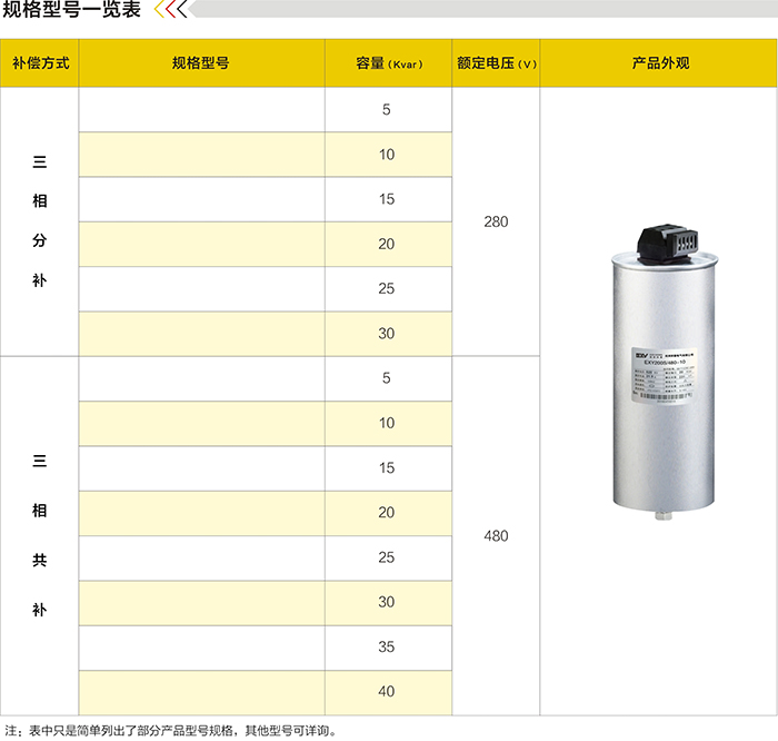 EXY200系列自愈式并聯電容器適用于標稱電壓1000V及以下工頻交流電力系統中,作提高功率因數,減少無功損耗,改善電壓質量之用。