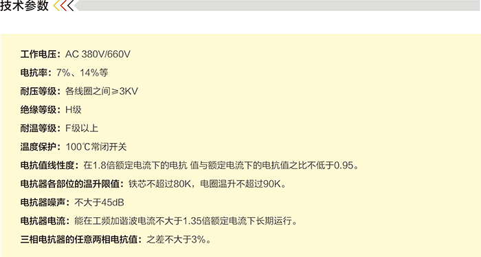 由于現代電力電子設備的大量使用,產生的非線性電流以諧波方式影響電網并加重電網污染,并且電容器在補償感性無功功率的時候,往往會受到諧波電流、合閘涌流及操作過電壓的影響,造成電容損壞和功率因數降低,為此需要在電容器前端串聯必要的電抗器,用于抑制和吸收諧波、保護電容器,避免諧波電壓、諧波電流及沖擊電壓電流的影響。可改善電能質量,提高系統功率因數,延長電容器使用壽命。