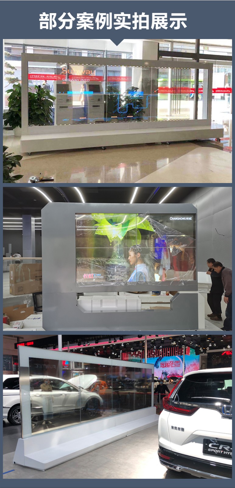 OLED透明顯示屏采用發光透明的有機OLED顯示屏,當關閉屏幕后,它呈現出透明玻璃的視覺質感,與環境和諧融洽,極具未來感的設計,可以給使用者驚艷的視覺感受。OLED透明顯示屏可根據客戶環境不同,定制不同造型的產品從而滿足客戶不同的需求,無論是智慧化辦公還是高級商場、銀行等建筑物,都可以通過定制化為企業及產品提升自身形象。