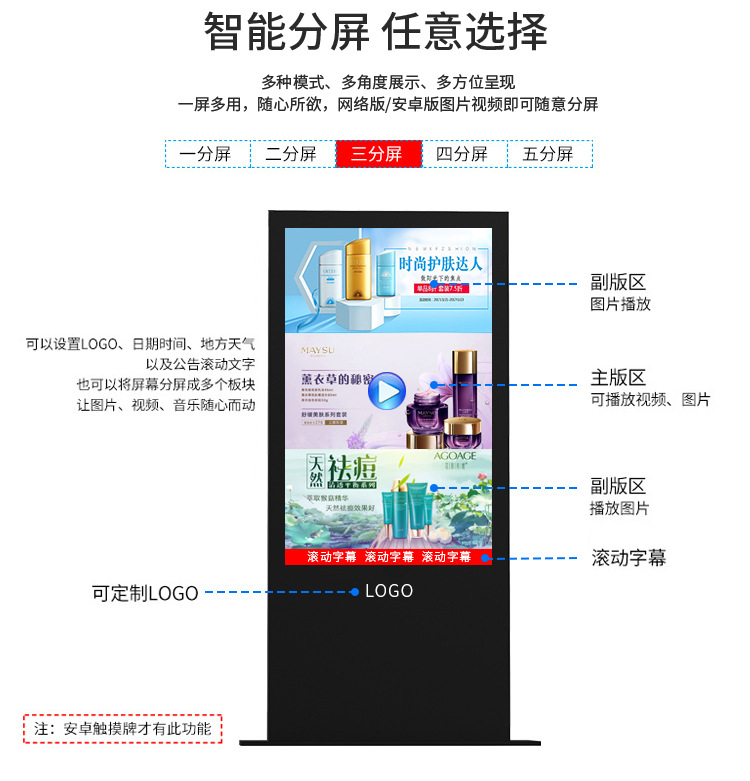 車站戶外廣告機(jī)適用于旅游景區(qū)、公園、廣告?zhèn)髅健⑸鐓^(qū)、公交站臺、高速收費(fèi)站、政府機(jī)關(guān)、校園等戶外場合使用,我們的戶外廣告機(jī)支持定制外觀、硬件、接口等,廠家直銷,價格優(yōu)惠,歡迎來電咨詢:18566661105